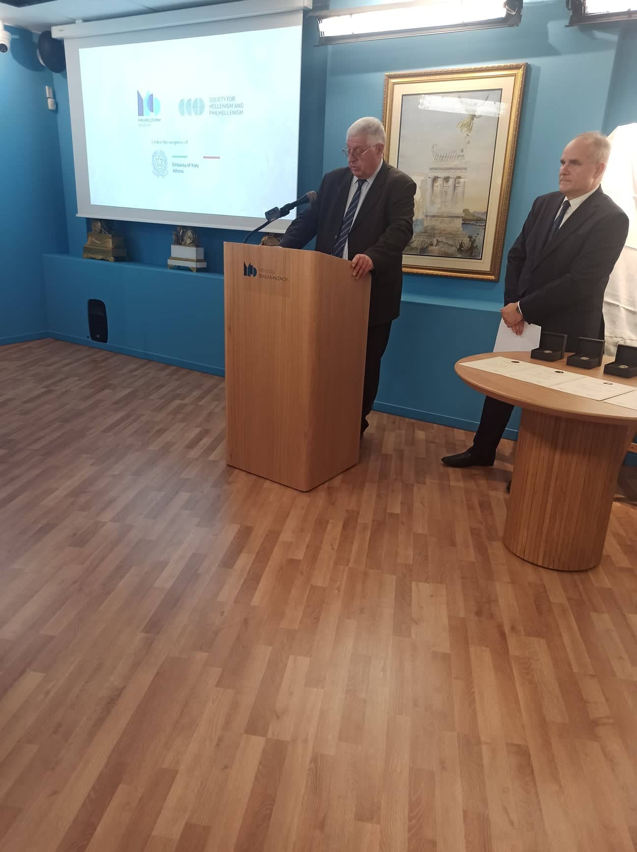 Accogliamo con fervore la presenza e rendiamo omaggio adue importanti personalità che rappresentano il moderno filellenismo in Italia: