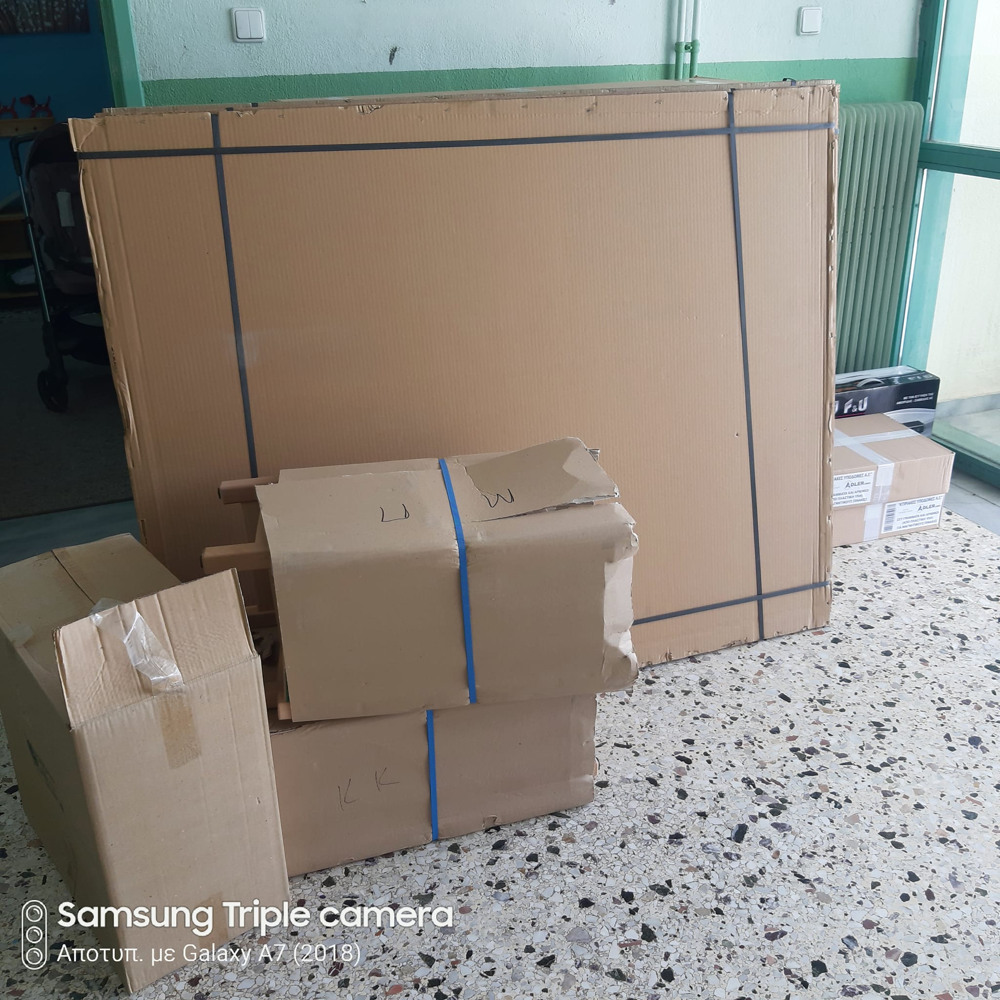 Επίσης, κάποιες μέρες κατέφθασε σε κούτες στο Ειδικό Νηπιαγωγείο Καβάλας εξοπλισμός (βιβλιοθήκες, τραπεζοκαθίσματα κ.α) που θα χρησιμοποιηθούν για την αναμόρφωση αίθουσας στο σχολείο.