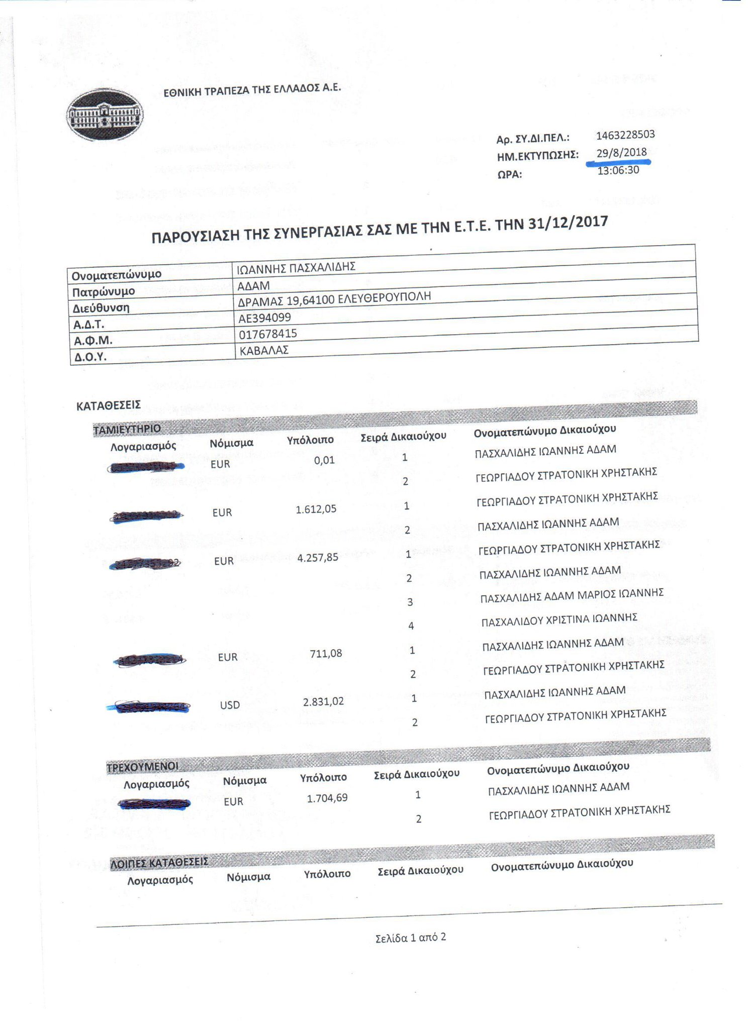 Στη δήλωση Πόθεν Έσχες που υπεβλήθη τον Οκτώβρη του 2019 για το έτος 2018, διαπιστώθηκε λάθος σε δεκαδικό ψηφίο. Πιο συγκεκριμένα, στη σελίδα 3, 4ο πεδίο «ΔΗΛΟΣ SMALL CAP», διαπιστώθηκε λάθος, καθώς το πόσο αποτίμησης θα πρέπει να είναι 2.775,91 ευρώ, και όχι 277.591,00 ευρώ. Στη διάθεση σας η βεβαίωση της Εθνικής Τράπεζας που αποδεικνύει τα ανωτέρω, καθώς και η δήλωση μου εδώ (όπου θα βρείτε το λάθος):
