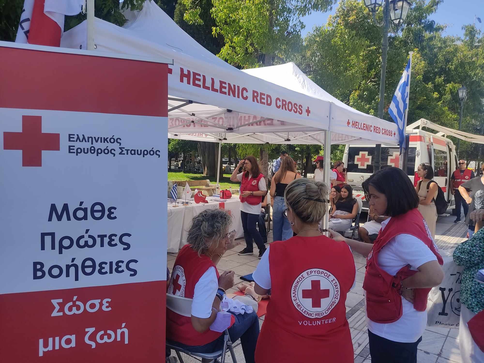 Με αφορμή την Παγκόσμια Ημέρα Πρώτων Βοηθειών, ο Ερυθρός Σταυρός Ελλάδος προέβη σε ενημέρωση και παράδοση μαθημάτων πρώτων βοηθειών στη πλατεία Συντάγματος.